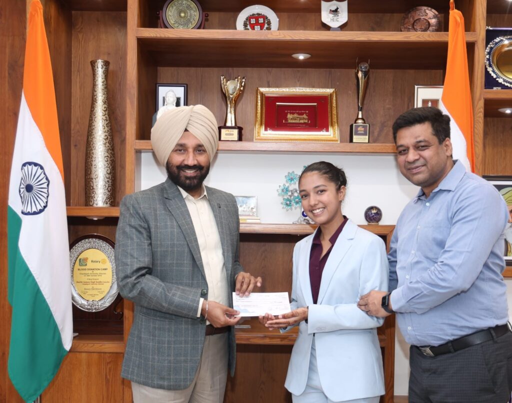 ਚੰਡੀਗੜ੍ਹ ਯੂਨੀਵਰਸਿਟੀ ਨੇ ਜਾਨਵੀ ਜਿੰਦਲ ਨੂੰ ਕੀਤਾ ਸਨਮਾਨਿਤ