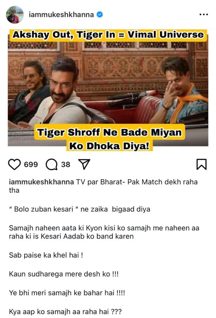 ਮੁਕੇਸ਼ ਖੰਨਾ ਨੇ ਟਾਈਗਰ ਤੇ ਅਜੈ , ਸ਼ਾਹਰੁਖ ‘ਤੇ ਵਰ੍ਹਿਆ