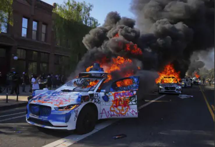 ਅਮਰੀਕਾ ਦੇ ਲਾਸ ਏਂਜਲਸ ‘ਚ ਜ਼ੋਰਦਾਰ ਹਿੰਸਾ, ਝੰਡੇ ਸਮੇਤ ਸੈਂਕੜੇ ਵਾਹਨ ਸਾੜੇ